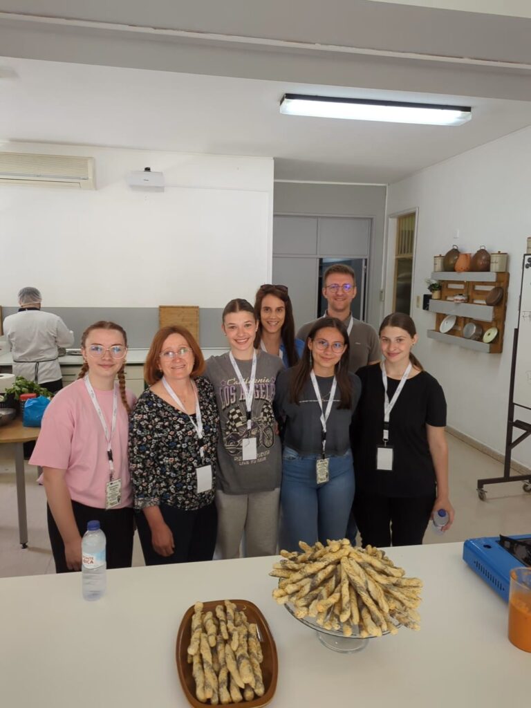 U sklopu projekta EcoCraft: Integrating sustainable Food, Wine, and Environmental Practices naši učenici, u pratnji nastavnika Snježane Koturić, Cassy Prskalo i Ivana Martinovića, danas pripremaju nacionalne specijalitete – vinske štapiće i kiselu juhu, dok naši domaćini iz Portugala pripremaju tradicionalna jela od kukuruza, bakalara, školjki i kozica.
